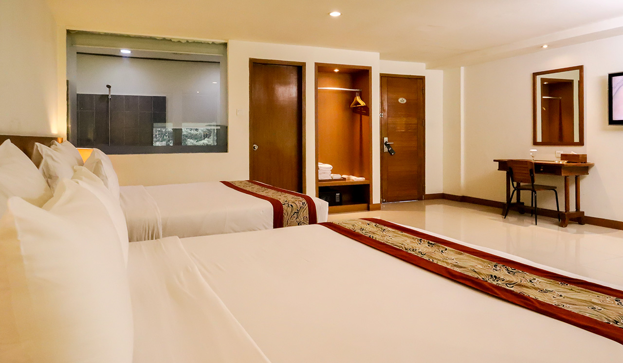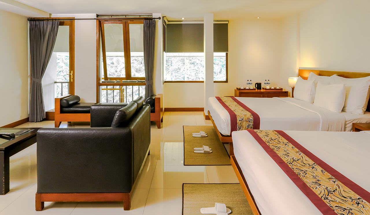 Featuring two luxurious king-size beds to comfortably accommodate up to four guests. With expansive views of the lush garden, this room creates a serene atmosphere that encourages relaxation and connection. Ideal for families on holiday, the Family Room provides ample space for shared moments and bonding experiences, making it the perfect setting for creating lasting memories together.